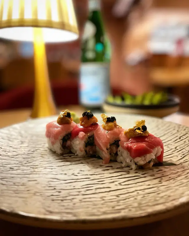以煙燻嘅方法將香味滲入拖羅,再配上紫蘇葉、海膽、魚子醬和金箔等,層次豐富~而且店員開蓋果一下啲煙湧上嚟真係好有視覺效果😳