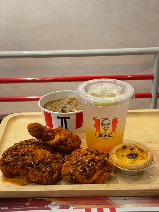 麻辣口水脆雞系列,有三種新產品: 麻辣口水脆雞、麻辣口水脆雞翼 和 麻辣口水雞扒桶飯😝,你要那一款呢?! 我點的A3麻辣口水脆雞滿足套餐,就有2件麻辣口水脆雞、辣汁蘑菇香飯、經典葡撻,