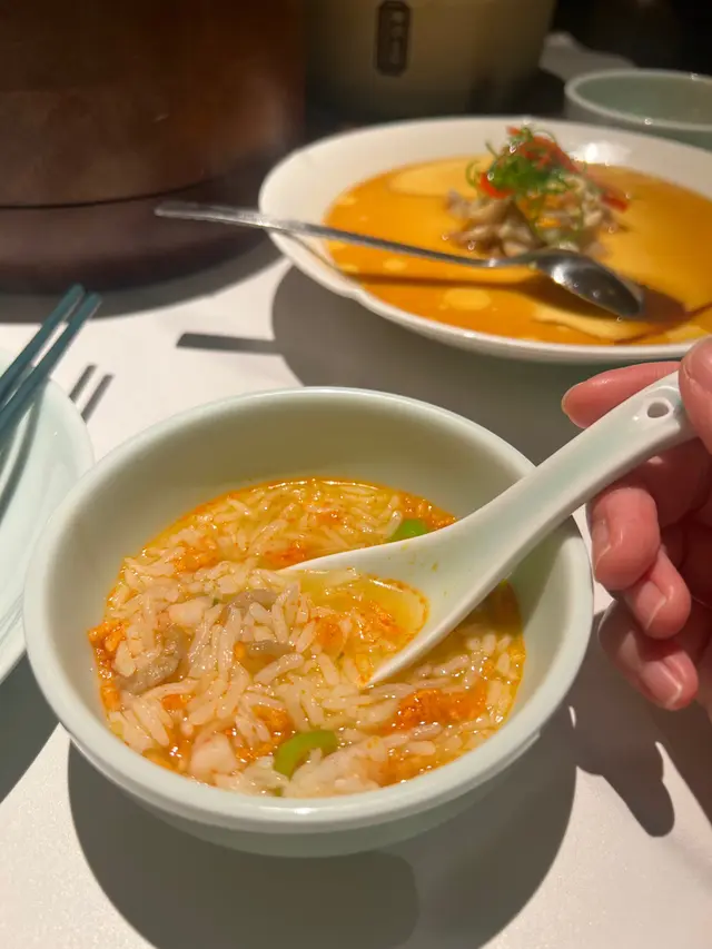 • 蝦湯泡飯:湯頭濃郁鮮香,蝦肉彈牙,泡飯吸滿湯汁,每啖都好滿足!