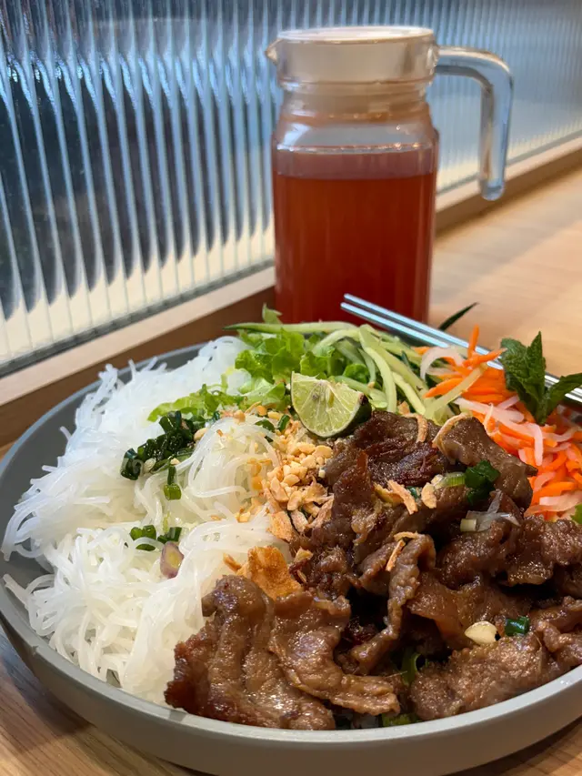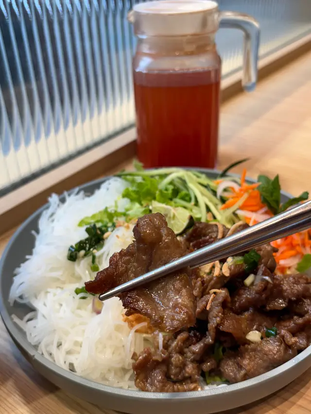 牛肉份量好多,香茅的香氣為整體增添左層次感。撈檬的口感滑順,再配上特製嘅醬汁,搭配牛肉和各種配菜,令人忍不住多吃幾口