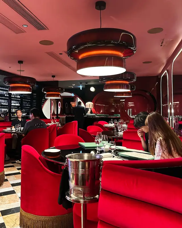 店內裝潢奢華瑰麗,廳堂盡顯韻味,意在向 60年代盛極一時的北角麗宮酒樓夜總會致敬