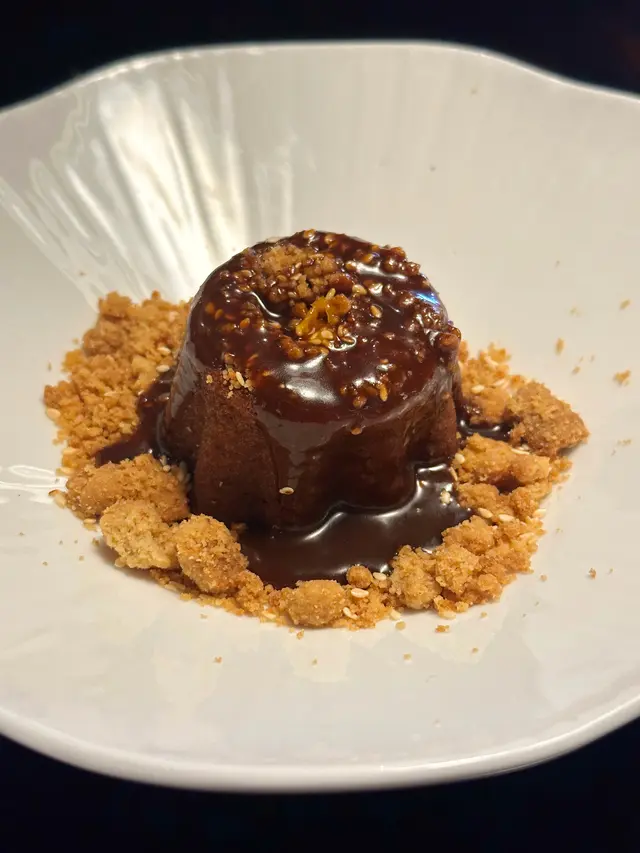 生日甜品 : 係薑味蛋糕,加上焦糖醬及脆脆粒,口感豐富