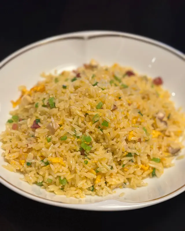 四川臘肉炒飯 : 炒飯炒得乾身夠鑊氣,粒粒分明,加入雞蛋、香菇及臘肉,再撈埋麻婆豆腐食更惹味