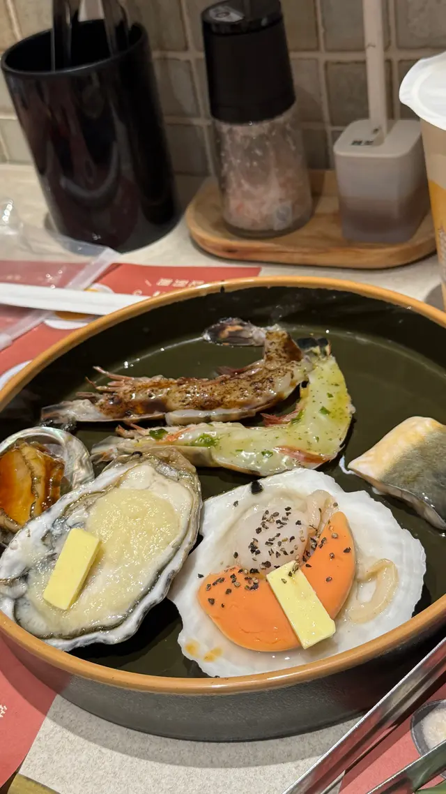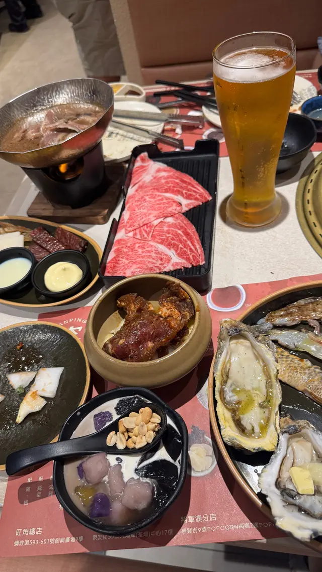 揀咗日本A4+和牛饕宴,仲可以任食澳洲M8和牛宴、SRF極黑牛餐套餐內所有食物,非常豐富呀~真正的食到飽😋 肉類方面,食咗幾款:日本A4+和牛、蘭王蛋月見牛、極.厚切檸檬牛舌、台灣醬燒牛腹肉、壺漬特調牛肋肉。海鮮有:炙烤生蠔(鹽蔥)、黃油蒜烤帆立貝、炙烤霸王蝦、培根帶子串。