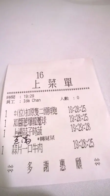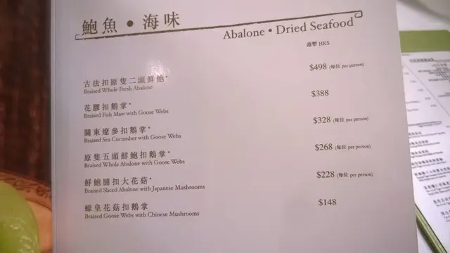既然$500是送的,那就叫個$498 的原隻2頭鮮鮑.因為我都未食過2頭SIZE.每人食一半份量已好足夠.鮮鮑用蠔油鮑汁等等煮得入味,質素富彈性,鮑魚味不太濃,但這種口感就只有這個份量既鮑魚先擁有.當然不及乾鮑那溏心味道,但過過口癮都算不錯.