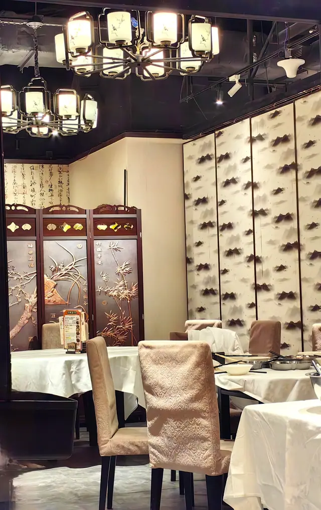 餐廳裝潢以中國古代風格為主,掛滿宮燈與古畫,散發古色古香。