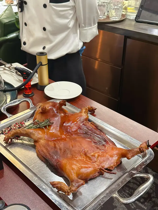 ♦️鐵板燒區:有好多款鐵板燒款式可以揀,當然唔少得有燒菠蘿🍍、多春魚、雞肉串等等,中意食鵝肝既唔可以錯過即煎鵝肝多士~另外仲有出面食唔到既片皮鵝🪿,皮脆肉嫩又大塊,配埋新鮮蒸好既餅皮好過癮😋呢區仲有燒肉眼扒同燒羊髀,千祈唔好錯過呀😌