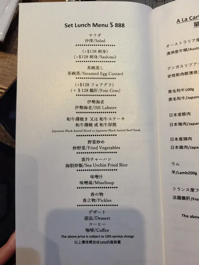 Set lunch menu ($888)