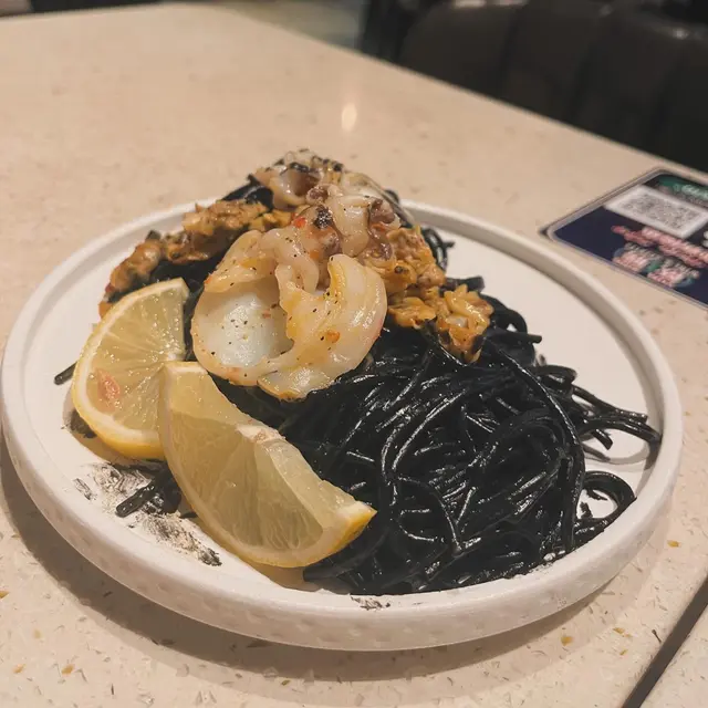 蒜香墨魚仔蜆肉墨汁麵 蜆肉份量十足,墨魚仔幾爽彈,最緊要係個墨汁麵好濃海洋氣息,食完成個口真係黑蚊蚊