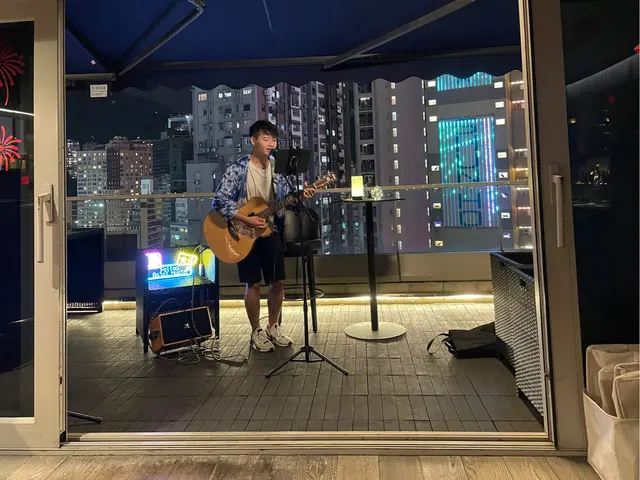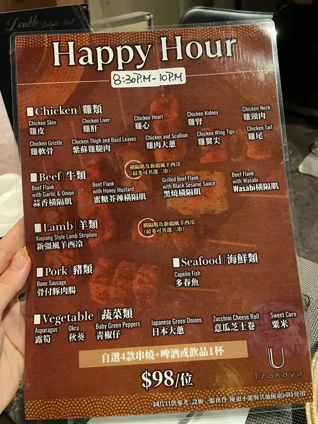 而家星期五六晚仲有Busking表演😇可以點自己嘅歌😌佢哋嘅真係唱得好聽㗎,而且唔係清唱,每首歌之間都會分享少少感受,所以一啲都唔悶。唱歌嘅位置係露台,會望到高樓層嘅景色,感覺好舒服。到咗晚上8:30就係happy hour串燒套餐🤓4串串燒加嘢飲,只係$98好抵食。