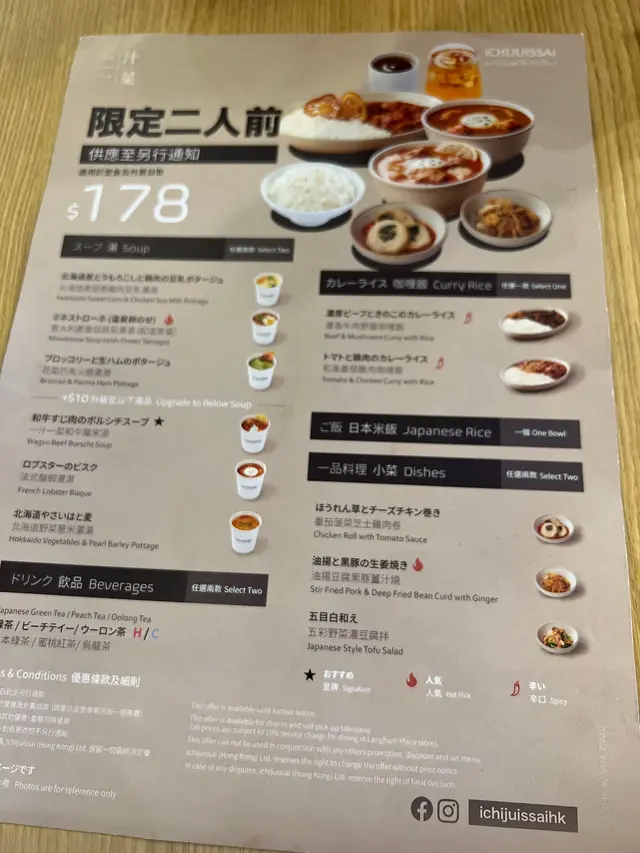 🥣湯 (選二項) : 北海道產甜粟雞肉豆乳濃湯、意大利產番茄蔬菜濃湯(配温泉蛋)