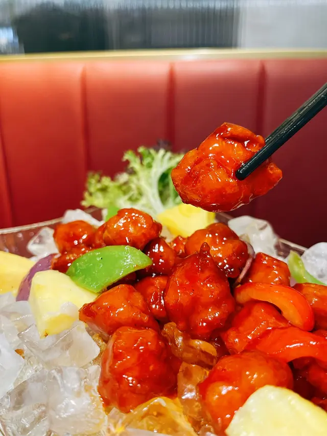 本身揀咗鮮果咕嚕肉 老闆推介佢哋嘅「隱藏餐單」😂 冰鎮更加解膩咁話😎 味道酸甜爽脆 因為凍食更加食到菠蘿果香 口感外脆內軟 瘦肉大大嚿 而且食得出肉質軟腍😚 喺香港都好耐冇食過咁好食嘅咕嚕肉 推介‼️‼️