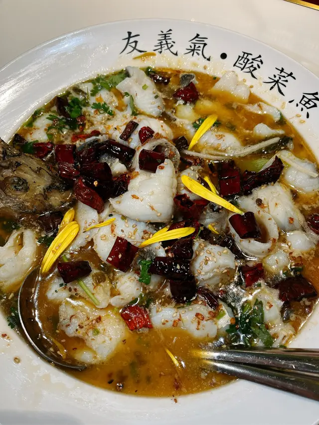 嚟到就梗係要食酸菜魚 必須講嘅係 呢度魚肉比起出面真係特別多 魚肉冇骨軟冧 湯底有傳統風味 深刻係油香極重 帶出到魚湯嘅甜味 中辣岩岩好👍🏻 除咗紅薯粉少咗啲 完全冇嘢挑剔😁