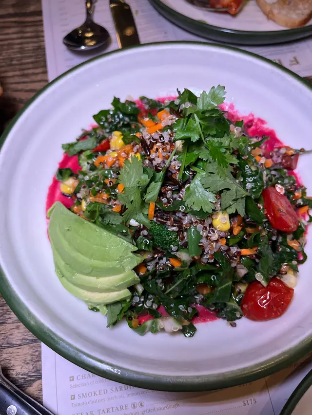 這道沙律的配料非常豐富,包括藜麥、野米、銀甜菜、車厘茄等,搭配酸香的柑橘醬,吃下去層次感十足,非常健康。🥗每一口都能感受到新鮮蔬菜的脆口和豐富的口感,絕對是健康飲食的首選。