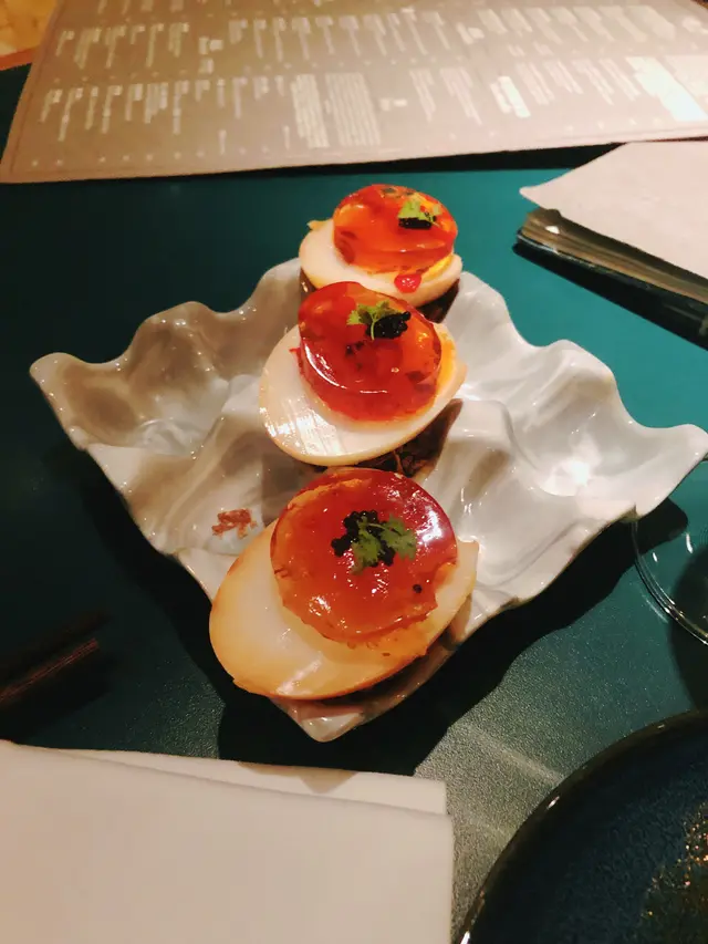 好欣賞呢個煙薰蛋既碟,襯哂個主題🤣中間蛋黃變左個啫喱又有d似皮蛋既texture,好得意😛👍🏻
