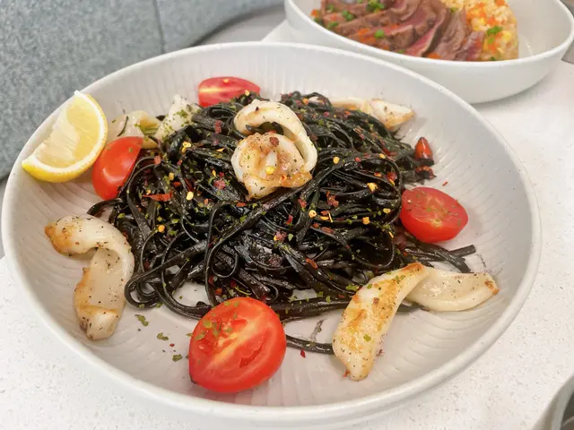 最精彩嘅一幕嚟喇! “烤魷魚香辣墨汁扁意粉”,味道正!墨汁意粉配上香辣烤魷魚,食落口感仲有種輕淡嘅海鮮香,麵條煮到恰到好處,又香又辣,真係太犯規喇!😝食完一口,我同朋友都驚爆眼球,原來西式意粉可以煮到咁好味!💣🌶