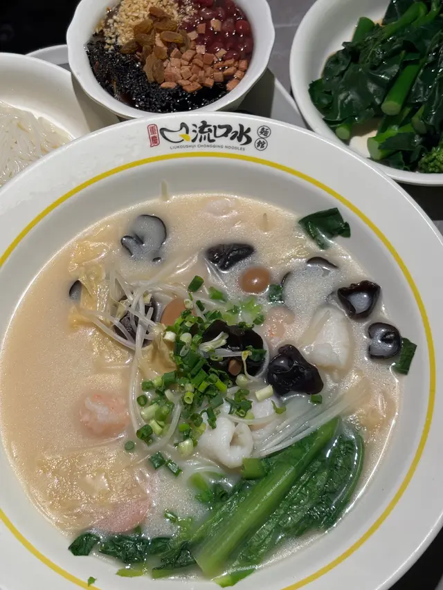 姊妹們這家「流口水」絕對是飽足系代表🔥 招牌豬骨湯熬成奶白色 米線多到能遮臉 配料豐富 這CP值不衝不行!