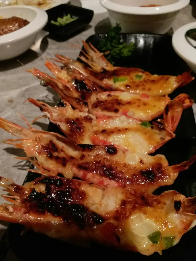 沙律醬燒蝦,都係驚喜推介,開邊蝦沾上沙律醬同芝士,野味。