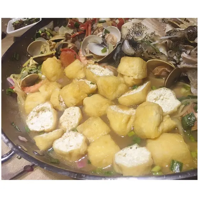 但是這個會充滿海鮮精華湯汁的豆卜是不能錯過的啊!!! 但要小心燙口呢!!