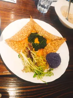包括: 菠菜三文魚法式薄餅 ($52)