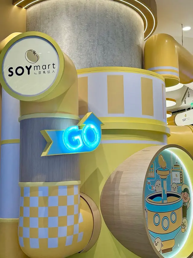 黃色管道與卡通豆豆工人,彷彿製豆工廠
