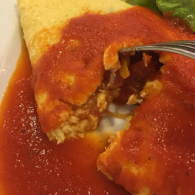 食物:呢度出名蛋包飯,omelette款仲要貴d, 難得早餐有聞名既omelette (早餐款:西班牙omelette 連沙律、茄汁豆$48),當然不用再諗。嘩,一上檯,比個份量嚇一嚇,根本係午餐既量。omelette 用傳統日式方法製作,外蛋皮剛熟咁包住裡面滑蛋同料。而裡面燈籠椒、洋蔥、蕃茄幾夠多,有少許煙肉。蛋係堅滑,切開有蛋汁,但食到尾會好溜同單調。