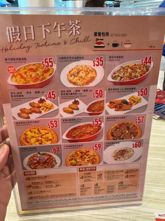 Pizza Hut抵食下午茶 細隻妙等级42025-11-1656 浏览 关注 今日星期日想食下午茶,特登走去Pizza Hut😆😆不過剛剛可去到2:10,所以等多5分鐘就啱啱好下午茶建議大家如果想食千島海鮮pizza或者卡邦尼意粉,就真係要去到下午茶先好去,因為午餐同下午茶同一樣嘢都可以爭20-30元1不過仲有啲抵食嘅,就係買一送一飯或者意粉,四個人以上去就真係抵到不得了我加咗$3要個龍蝦湯,的確好飲加多$14要兩隻肥嘟嘟嘅雞翼當然食埋我最鍾意嘅千島海鮮pizza加芝心批🫶🏻🫶🏻🫶🏻總括嚟講係抵食嘅🫶🏻🫶🏻而且仲要唔限時💐係一個同老友相聚嘅好地方🧚🏻♀️🧚🏻♀️以上食记乃用户个人意见 , 并不代表OpenRice之观点。赞好分享Pizza Hut抵食下午茶 必勝客 (開心廣場) https://s.openrice.com/QrLT0G3bV00检举 张贴 评分4味道4环境4服务4卫生4抵食用餐途径堂食