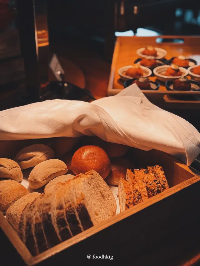 係餐廳外等候安排入坐已經會見到自助區,自助區有好多野揀,有刺身壽司魚生區🍣、凍肉同烤芝士專區(最多人排!因為佢會將岩岩烤溶左既芝士比你,你可以配d你鐘意食既包)🧀、沙律區🥗、前菜區🍘(各款都好精緻,我當日有橄欖油蝦他他、紅菜頭合桃芝士西班牙凍湯、布拉塔芝士配辣花生麻醬、香脆蘑菇球etc.)、甜品🍩同生果區🍈。野食fill得好快,同埋餐廳好細心,例如部分麵包,係會熱住既,同埋隨時保持整潔,對於lunch semi-buffet黎講都幾impressed。🩷