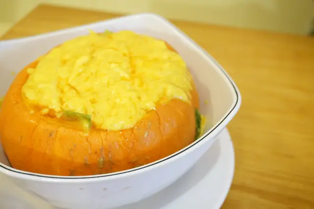Talking to the price, I think Fried Pumpkin Curry Soft Shell Crabs is a little over-charged, however, that little basket of soft shell crabs change my idea in a big way. It is perfectly fried to have a dry, clean, milky yellow look. Grab one with your finger, you can immediately recognize how soft it is, that is undoubtedly matched your expectation of all delicious vocabulary, such as tender, soft, moisture. Well, my point is not only this, I was more convinced by its crunchy paper-thickness shell, covered by the fluffy fried flour. As to the pumpkin, it doesn't wow me a lot, but I do consider this into my fault, because I am always expecting coconut taste in any kind of curry dishes no matter it should have or not. So maybe, it fits your taste, but anyway I believe any dishes having a name as 'soft shell crabs' there deserves your try.