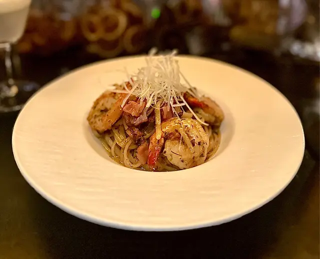 帶來了獨特的風味,結合了培根和蝦的鮮香。面條甜甜的、口感彈牙,融合了大阪燒的風味,醇厚而光滑,蟹肉的蟹油更是為這道菜增添了深度。