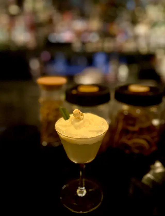 是一款熱帶風情的雞尾酒,使用椰子和斑蘭慢煮,散發著椰香和焦糖爆米花的迷人風味,輕輕襯托出朗姆酒的微妙香氣。