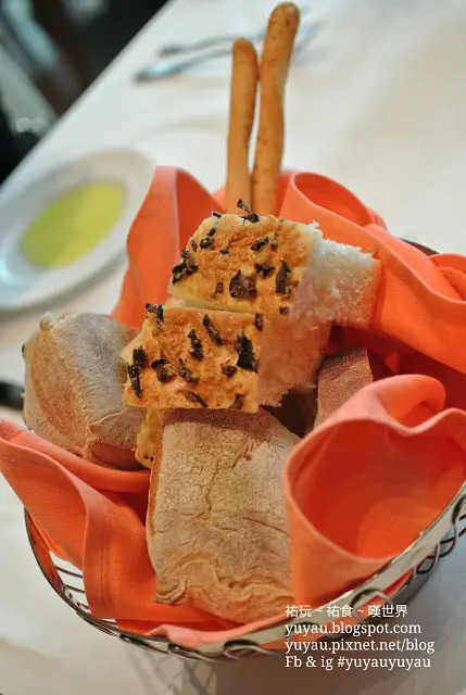 年前吃過澳門威尼斯人Portofino的任吃午餐,很喜歡,這次再到店價錢已加至Mop148+10%一位了可以任吃凱撒沙律、四款Pizza及六款Pasta 全都是即點即做的 先送來麵包籃,意大利橄欖包較少見,但我不喜歡油油的質感相反很喜歡這裡的sourdough bread,外層脆脆的,内裡綿綿,總喜歡先吃光裡面的麵包再慢慢吃脆皮 拌著麵包吃的黑醋、蕃茄醬、亜支竹醬及茄子醬覺得亜支竹醬味道較特別,帶微酸,跟麵包條很配 這裡的牛油又驚喜,是淡牛油,味道卻像芝士,我們不怕肥大塊大塊地放在麵包上吃店員頗醒目,知我們超愛那牛油就在差不多吃完時主動多送來新的 橙汁是鮮榨的,滿滿果肉 凱撒沙律很清新,羅馬生菜爽脆丶醬料不會過咸 熱盤送來時可請店員加芝士,他們就會即場刨出芝士粉呢,是真正芝士粉喔 (大愛) 任食Menu的意粉是試菜份量,我們三個人就點了全部六款也不過份意粉也是餐廳自家製的,比外面的意粉沒那麼硬,不太Q,但直正意粉就是這口感吧大部份意粉用上蕃茄醬,酸酸的不會太滯 Pizza就比較大份量了,三個人也吃不到一個Pizza呢Pizza薄底鬆軟,芝士味濃郁,但配料好像分得不均勻,我們都先挑有菠菜芝士的來吃 …Read More