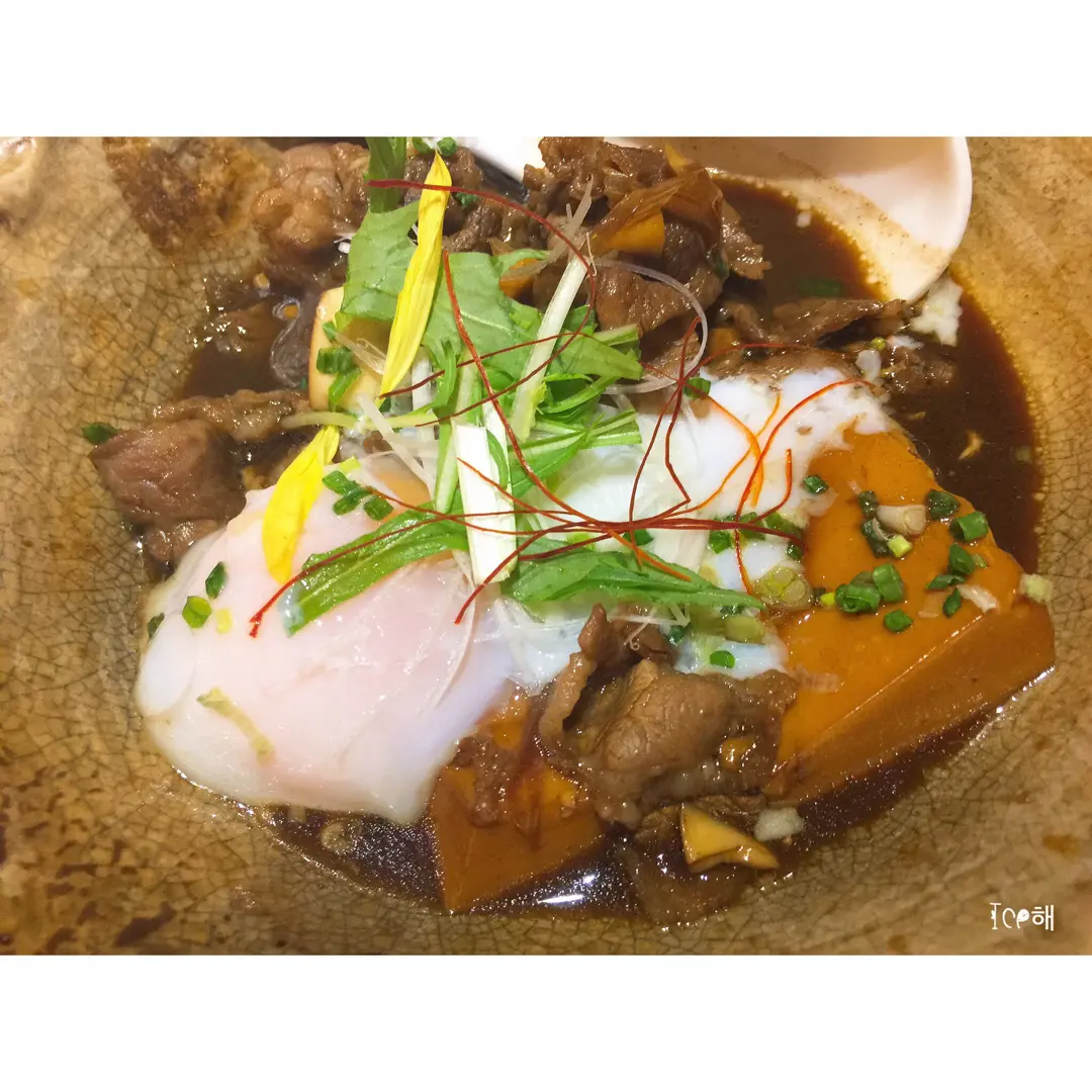 牛肉煮絹豆腐配溫玉子