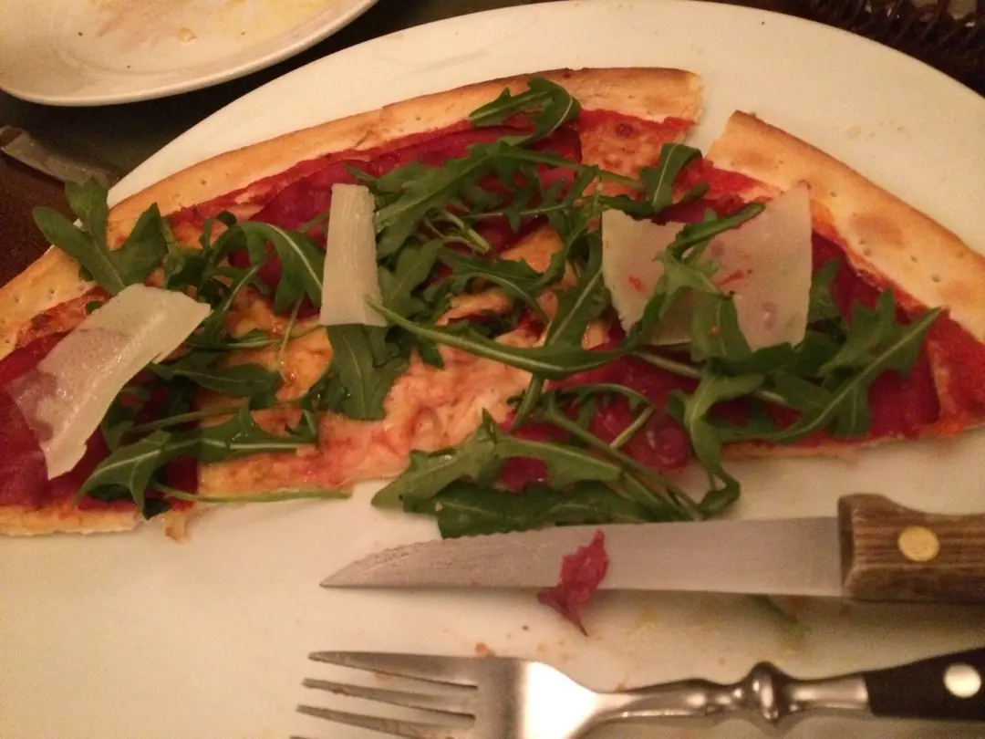 izza with Mozzarella cheese, bresaola, rocket salad & parmesan cheese