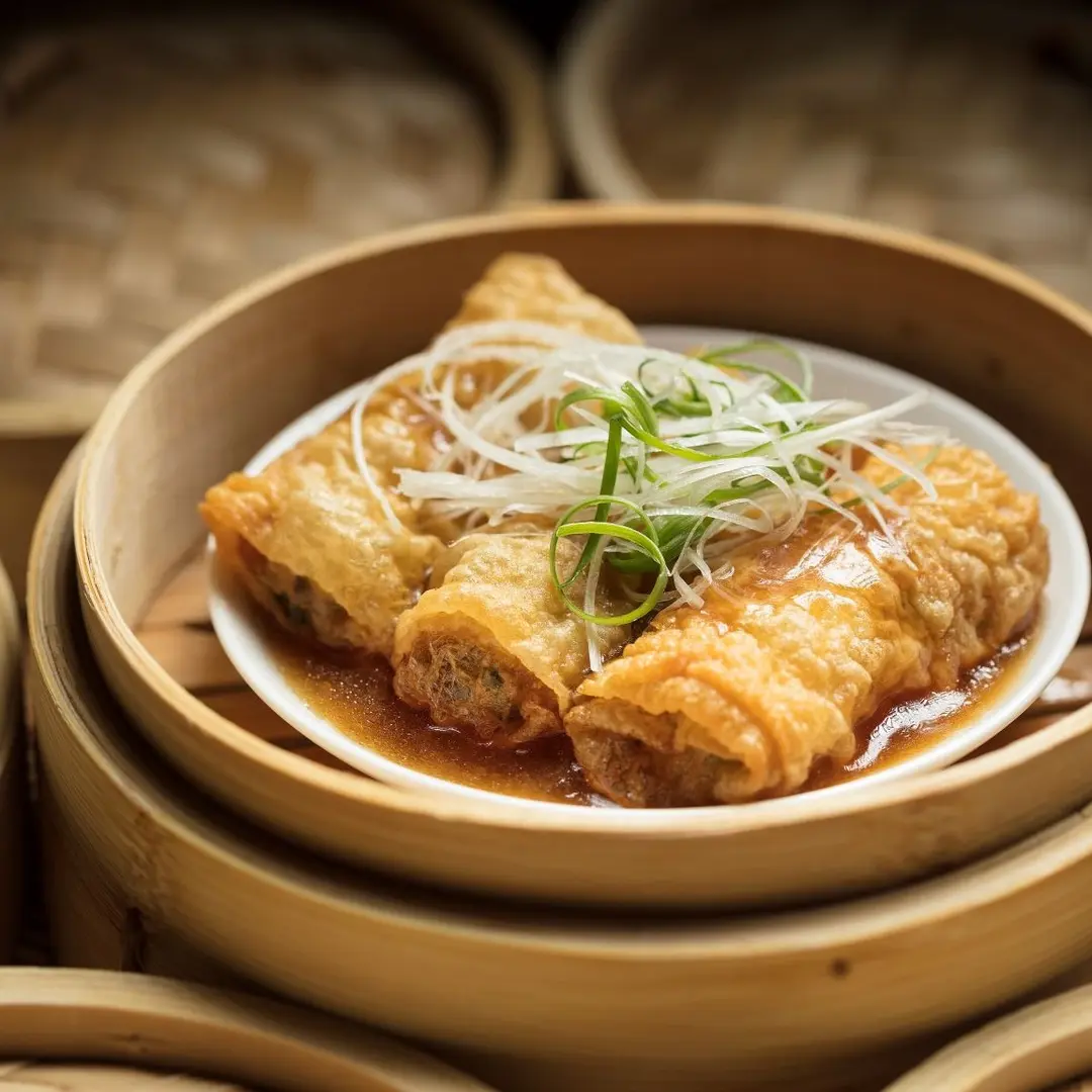 Steamed dried bean curd skin roll 薑蔥鮮竹卷
