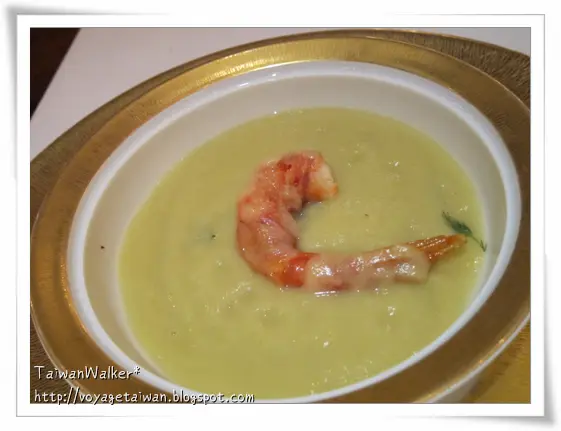 香草蒜蓉湯伴西西利紅蝦配豬肉面頰及甜椒