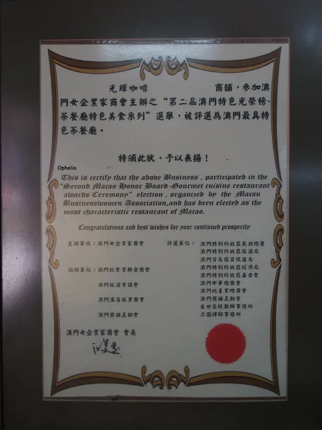 味道的烙印 ophelia710等级42014-02-197K 浏览 关注 在澳門不難找到豬扒包的蹤影,而且每家都各有特式而我嘛,都頗喜歡的啊!!所以在網路上見到有推薦的都想去試試它的地點不太難找~ 從家裡過去也大概只需15分鐘左右正值午餐時間也一位難求啊小小的店面,生意很好,客人進進出出的這裡被評價為 澳門最具特色茶餐廳一目了然的菜單,豬扒包是必點的啦進店就留意到老板在我身後仔細的把每片豬扒都拍至鬆軟豬扒包﹝MOP$16﹞麵包溫熱烘得酥脆鬆軟,薄薄的豬扒帶微鹹香肉質鬆化不乾柴,瞬間吃掉1個了豬扒的份量算多,雖然不是厚厚重肉感的那種而它沒丁點肥脂但也有甘香軟腍的肉質雞扒麵﹝MOP$20﹞份量都偏小耶,會吃不飽喔但雞扒煎得香香,放在乾爽彈牙的麵條上光輝咖啡的食物不僅讓人滿意,價位又便宜還是比較少見的老舊店家,富濃濃的人情味…查看更多+ 1以上食记乃用户个人意见 , 并不代表OpenRice之观点。2分享味道的烙印 光輝咖啡 https://s.openrice.com/QrLT1qycHW0检举 张贴 评分4味道3环境2服务2卫生4抵食用餐日期2014-02-17用餐途径堂食