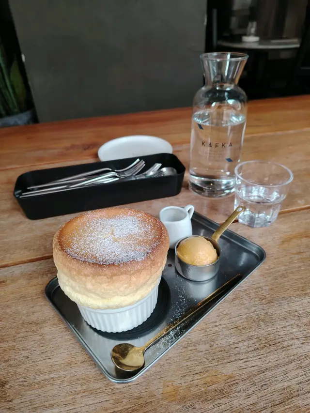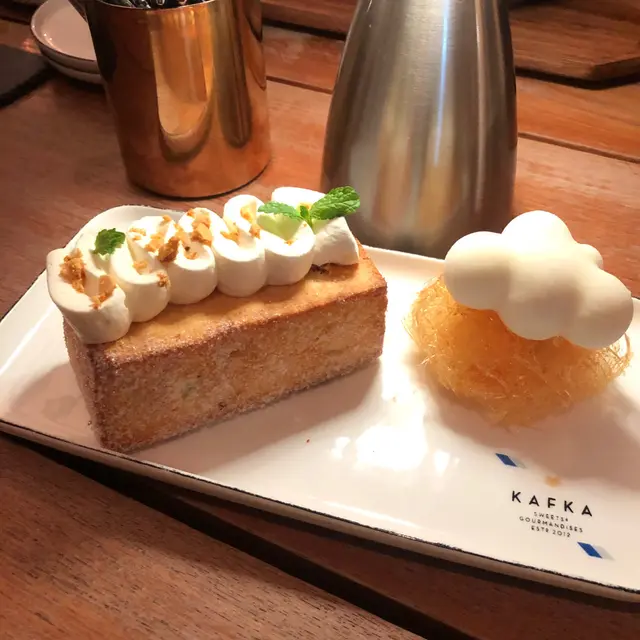 衝出香港過大海食好西原來澳門也有靚靚打卡餐廳卡夫卡是澳門首間法式甜品店2012年開業至今已累積無數好評以捷克作家”卡夫卡”為名店內環境舒適,充滿藝術氣息卡夫卡的蛋糕和甜點都非常受歡迎每款甜點都以著名景點或藝術作品命名將文字意象融入甜品設計例如「都路里」、「小王子」、「馬特洪峰」等由於第一餐, 所以食得唔太多甜品真係好靚但我想試梳乎里多d💛葡汁雞肉意大利麵 MOP$78💛抹茶豆乳 MOP$42💛平白咖啡 Flat White MOP$40💛原味梳乎里 MOP$78葡汁雞肉意大利麵點佢是因為想試下澳門的葡汁雞原來都是偏淡淡的味道原味梳乎里口感軟綿綿非常好食另配有焦糖槳和果味酸甜雪芭我覺得不加都已經好夠味焦糖槳有點苦酸甜雪芭實在太酸一款甜品可以有三種口味(我認為好食過香港太平館的梳乎里)埋單 MOP$238🤝📍KAFKA Sweets & Gourmandises澳門荷蘭園大馬路20A-20B號麗晶閣地下…查看更多