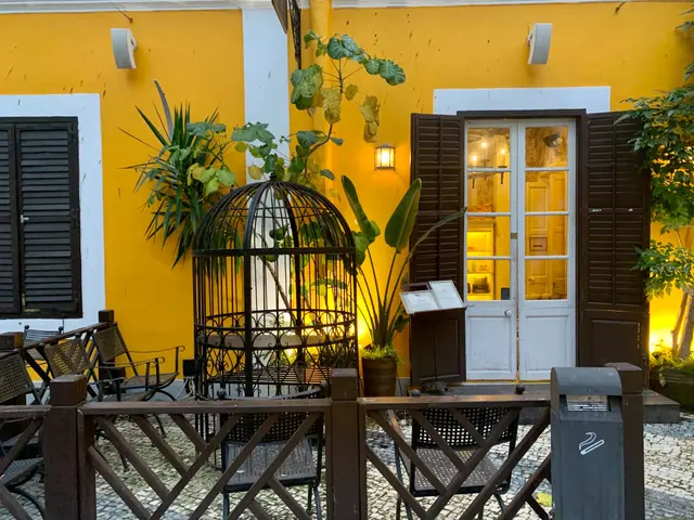 「婆仔屋」是一家擁有百年歷史的黃色葡式建築, 餐廳外面也擺放了一些桌椅以及一個很大的雀籠作打卡之用;