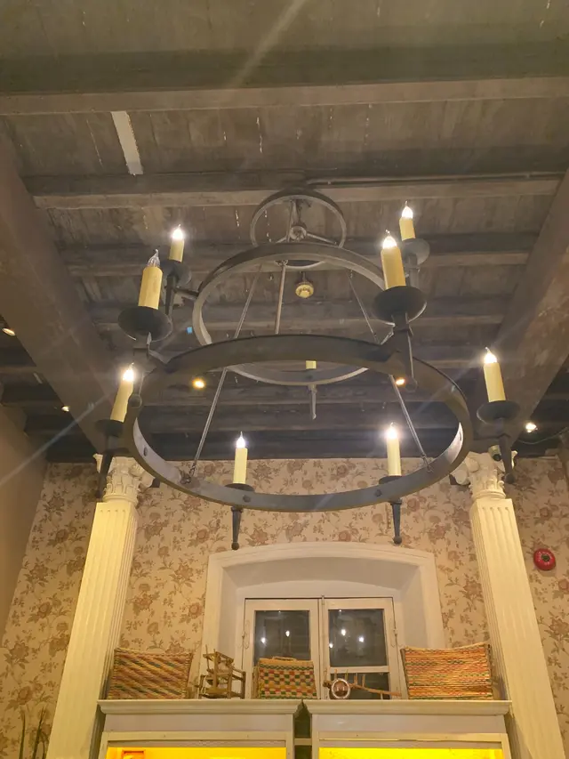 天花吊燈採用懷舊式蠟燭台造型的吊燈;