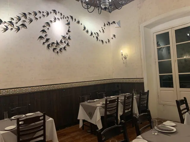 接待處房間也是佈置得相當懷舊,除了枱面有幾個很舊式的黑色撥號電話以外,頭頂上方也放置了很多代表葡國的各款公雞🐓公仔;接待處房間內也擺放了數張餐桌,但相信只作為擺設之用,天花吊燈亦採用了不同款式懷舊式蠟燭台造型吊燈,白色木框玻璃窗襯托出這一個房間非常有情調,不能在此用餐只做擺設,真的可惜。