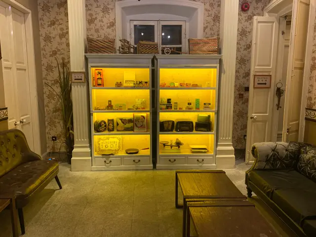 進入餐廳首先是一個方形客廳,左右兩邊均放上舊式梳化🛋️;客廳盡處的櫃內則放置了很多懷舊的物品,例如收音機📻,鐵罐…等等;