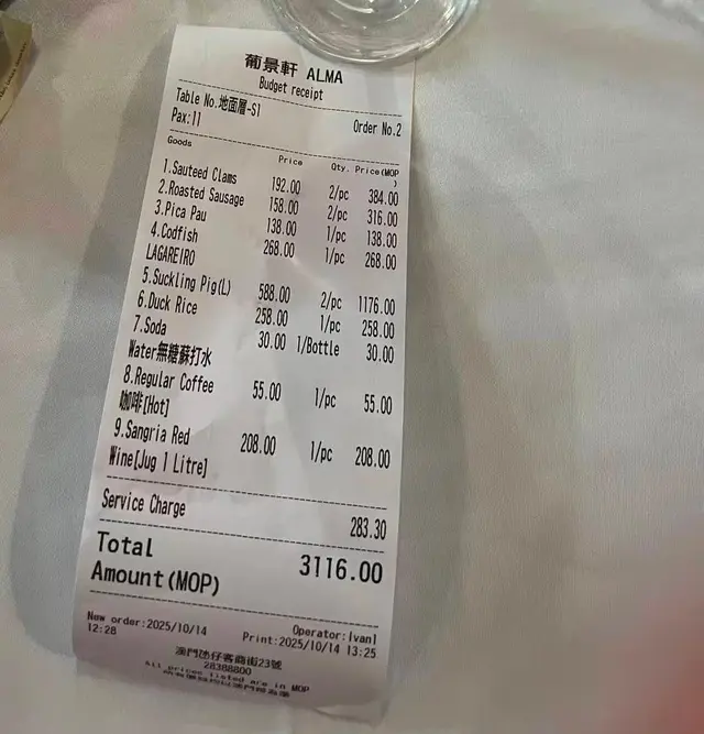 環境充滿葡國風情,藍白瓷磚牆同木桌古燈好有情調。服務親切,上菜快,人均MOP200-400,性價比高