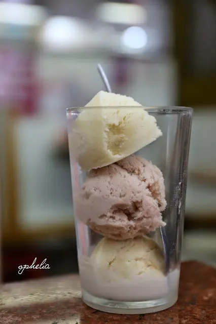 每杯可選3球不同口味﹝MOP$23﹞我倆選了 薑汁 香芋 椰子 相間的顏色很美