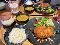 約朋友觀塘食飯,咁岩搵到依間,好似開咗冇耐,但見到啲好評幾密,有諗過係打手驚伏😂不過見價錢ok所以照試吓佢!。千層吉列豚🍛以為咖喱係日式,點知係港式味!有驚喜!大讚!🤤好食好食之後個豚係勁脆好juicy 我叫左烏冬,覺得份量可以再多啲啲-然後個餐 包湯包飲品🍸。個日個湯係南瓜湯!入面特登保留左一絲絲南瓜肉,增加左口感。飲品就叫左??(唔記得叫咩)但餐牌寫住好似係飲得嘅Tiramisu~所以就叫嚟試!真係好飲😹完全係飲版Tiramisu!!! 其他飲品望落都好吸引,下次再試,*特飲冇特別收費值得讚😭👍🏼-另外係QR code自己落單,但店員都好有禮貌,有特別要求可以同佢地講…查看更多
