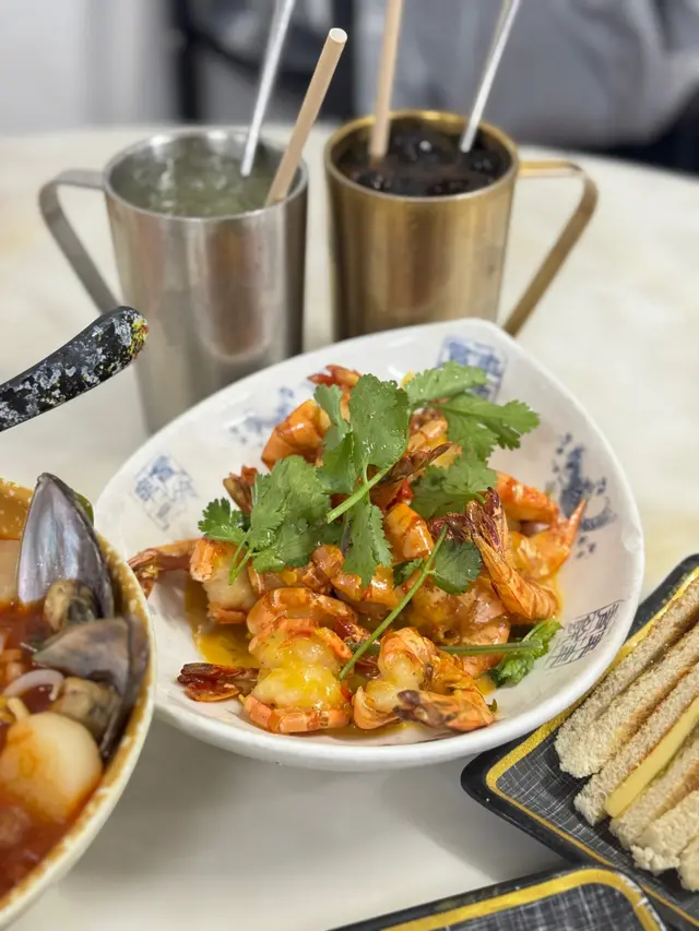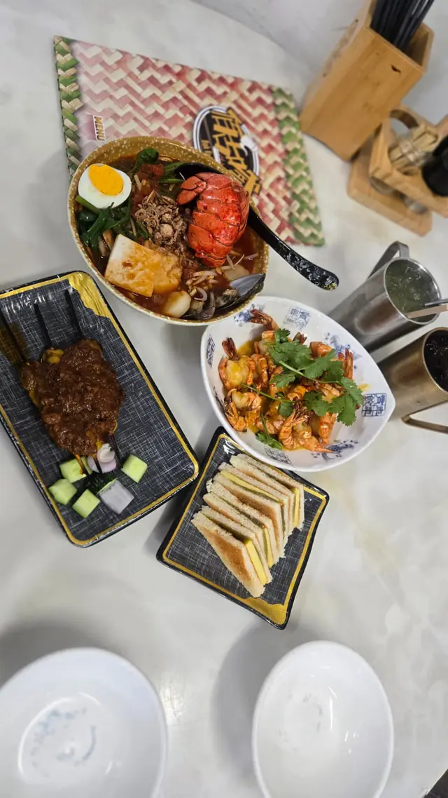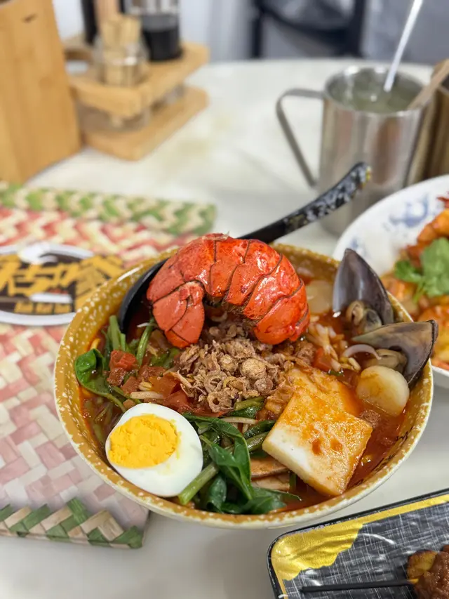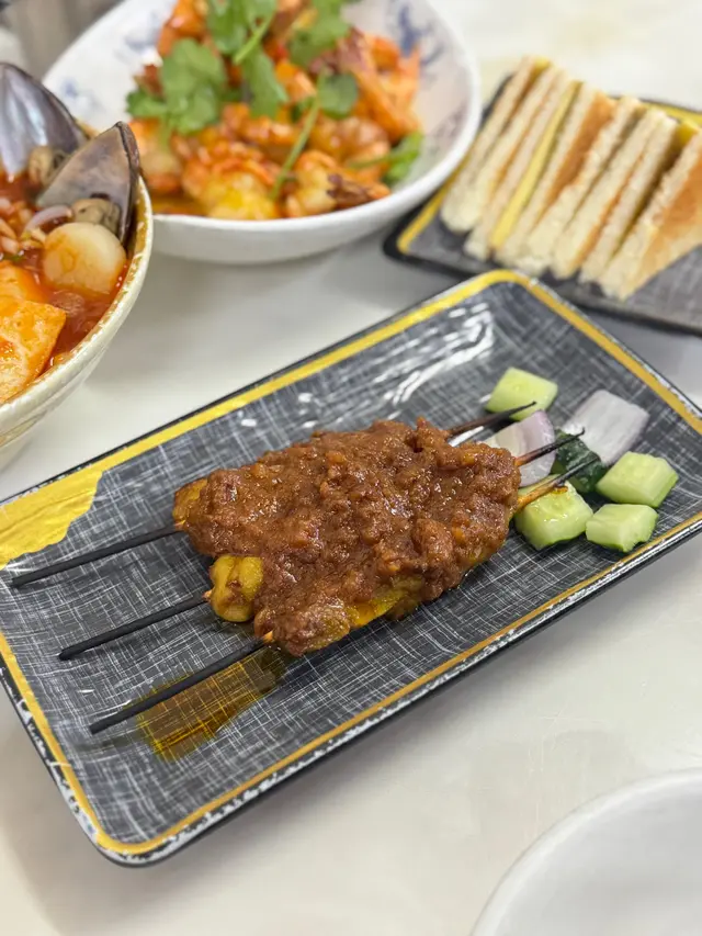 平日夜晚同朋友嚟到 佰古嗲,原本以為會好清靜,點知都幾多人。餐廳有兩層,今次安排咗我哋坐上層,環境舒適,冷氣足,座位之間唔逼,傾計好自在。今次試咗幾款招牌菜:🩷🦞龍蝦麵海鮮濃湯蝦麵 湯底香濃,海鮮份量十足,有原隻龍尾,仲有帶子同青口,全部都夠新鮮。麵質彈牙,大大碗食落超滿足😋。🩷牛油咖央多士 外脆內軟,牛油同咖央比例剛好,一定要趁熱食!冰火交融既口感邪惡又幸福🍞✨🩷雞肉沙嗲串 / 豬肉沙嗲串 烤得香口,沙嗲醬濃郁但唔膩。豬肉唔乾柴,雞肉亦入味,兩款都好啱口味🩷肉骨茶(豬脾骨) 豬脾骨嫩滑,完全唔柴。湯底藥材味香濃,飲落暖笠笠,好舒服🫶🩷🦐 黃金醬虎蝦 — 咸香蛋黃醬炒虎蝦,香濃惹味,蝦肉份量足,鮮甜滿足。🩷飲品揀咗 冬瓜龍眼茶,清甜解渴,食完重口味嘢飲一啖真係好正🧋。唯一小小願望係如果可以再大杯啲就更好。✨ 整體感覺:同朋友聚餐好適合,食物水準穩定,特色菜式選擇多。下次想試埋喇沙系列同黃金醬系列。平日夜晚都幾旺,建議早啲嚟慢慢享受😉。🔔 溫馨提示:店內只接受現金或八達通。…查看更多
