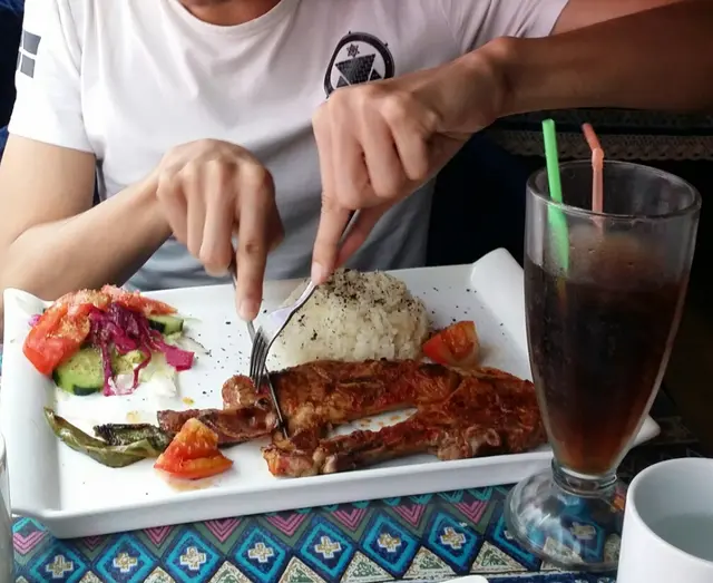 。就店主說,他一般10點才吃晚餐,知道我們6點就吃感到有點小驚訝。我們點的餐點都不是套餐,當朋友問是否可以當成套餐時,店主二話不說就答應了!飲品和甜點都送了!!超。大。方!! (土耳其人都是這樣的嗎?)這個,餐名忘了,就記得朋友叫的是羊肉。我不喜歡羊肉的酥味,但這個一。點。都。沒。有,軟軟的好好吃呢