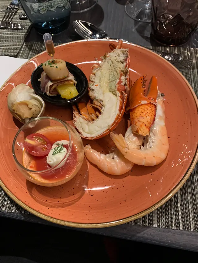 龍蝦、帶子卷和其他海鮮。有不同的海鮮款式而且亦很新鮮。最驚喜的是這個帶子卷,醬汁可自由加入之餘和帶子煙肉亦很好配合。口感一流