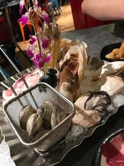 之前上網睇過某blogger介紹的磯燒水產放題, 已經好想去食,book 錯左銅鑼灣果間,原來完全唔同, 果間係打邊爐,又唔好食,d 侍應態度又差, 又濫收費,請睇返我上幾篇,但今日終於黎返元朗呢間食磯燒水產放題,一開始佢會俾一盤海鮮,有蝦,扇貝,青口等等, 第一盤係勁新鮮肥美好味,d 蝦仲識郁,食完可以再點d 新既海鮮,不過扇貝就細過之前果d好多,但之後可以再order 既燒番薯勁好味,佢既刺身都ok, 甜蝦就冇大喜屋果d 咁大隻同鮮甜,其他刺身都不過不失,熟食類如牛扒,牛舌(第一轉),麻辣東風螺都超好味,有apple cider 可惜我唔好酒,好多款韓國雪糕雪條, 但甜品區就麻麻地,總恬黎講都抵食既,我食時段係5-7(但侍應一到6點半就極速收碟趕客,呢點