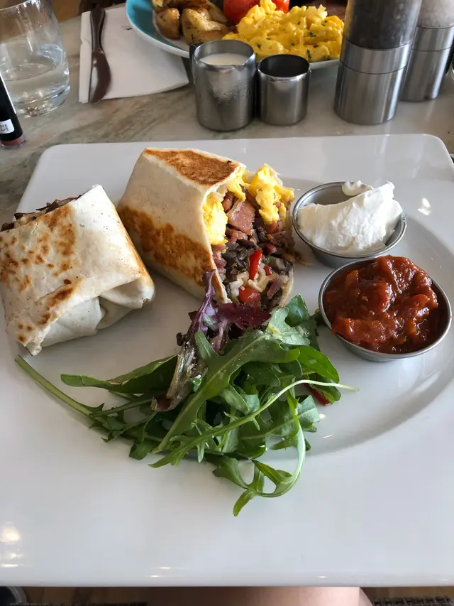 墨西哥卷有蛋,肉,豆,芝士。有沙律菜和兩種醬料。份量很夠,只完成了一半,另一半要打包。適合二人享用。而hot latte質素很高,店員說咖啡豆是由澳洲引入。口感豐富,奶花的泡沫層感覺濃濃的。…查看更多